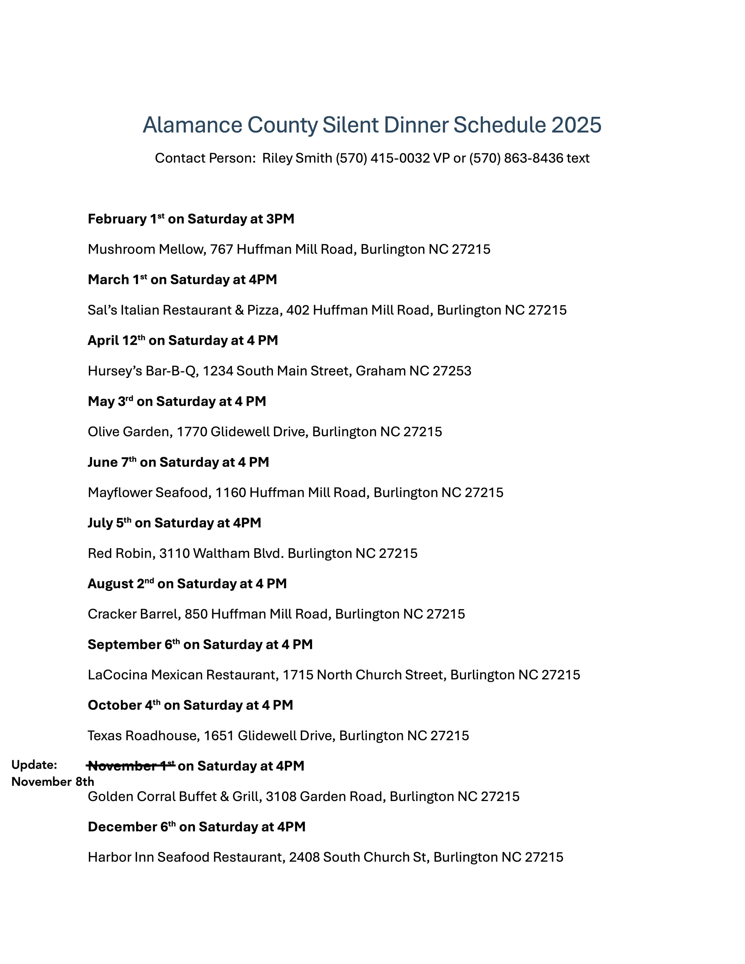 For information, email SILENTDINNERWINSTONSALEM@gmail.com.